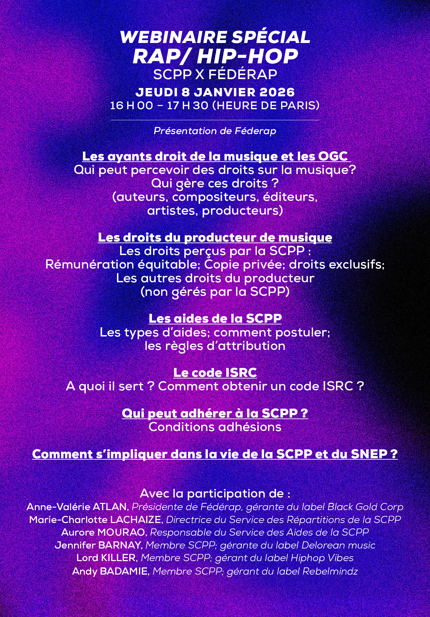 >> JE SOUHAITE ASSISTER AU WEBINAIRE SCPP / FEDERAP DU 8 JANVIER 2026