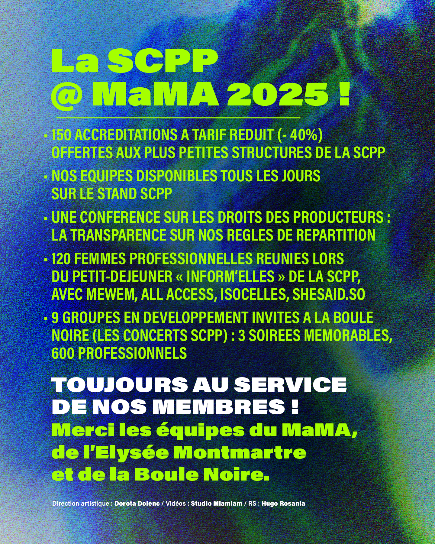 Retrouvez les artistes qui performeront au MaMA 2025 dans le cadre des Concerts SCPP